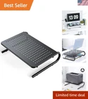 Monitor Stand Riser, Monitor Riser, Laptop Stand for Desk, Laptop Riser, Desk Organizer for Monitor, Laptop Shelf w/Vented for Screen, Computer Stand for Laptop, PC, Printer, for Home & Office MONITOR STAND WITH HOLE DESIGN: Made of power coated steel with perforated holes, this laptop ventilation stand performs well for air flow and keeps your laptops/printers cool. STURDY MONITOR RISER FOR ERGONOMIC VIEW HEIGHT: Comes with x x (L x W x H) inch size, this monitor stand could raise your monitor by inches, reducing pains on your neck and back. STABLE & SOLID LAPTOP SHELF:Solid steel construction and inch steel plate, it widely hold most flat panel monitors, notebooks and printers hold up to 44lbs without wobble; The non-slip leg also keeps laptop riser stable and protects your furniture from damaging. EFFECTIVE DESK ORGANIZER WITH LARGE STORAGE SPACE:This HNLL2 laptop riser for desk easily free up more space on your desk, you can put things like papers, cable box, gaming devices and even full size keyboard under this monitor stand, making your desk clutter-free. EASY ASSEMBLY: This metal monitor stand HNLL2 is very easy to install. You just need take 2 minutes to connect two legs with the platform. The monitor stand can be used as laptop shelf, computer stand and printer stand.