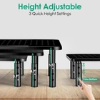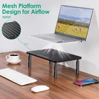 Monitor Stand Risers for 2 Monitors, 3 Height Adjustable Monitor Stand with Pen Holder, Dual Monitor Riser Laptop Riser for Office, Home, School Supplies, 2 Pack, Black Product Details Color: Black Size: 2 Pack Brand: La Jaco MPN: DS01-2P UPC: 737706908308 EAN: 0737706908308 Brand: La Jaco Color: Black Form Factor: Laptop Compatible Devices: Laptops Mounting Type: Tabletop Package Dimensions: 15.83 x 10 x 2.13 inches Item Weight: 3.41 pounds Manufacturer: La Jaco Country of Origin: China Item model number: DS01-2P Form Factor: Laptop Assembly required: Yes Batteries required: No Ergonomic Height Adjustable: This monitor stand features an ergonomic design, offering three height settings at 3.9 inches, 4.7 inches, and 5.5 inches. Achieve your preferred and comfortable viewing height by simply pressing the buttons on the legs to customize the stand's elevation Efficient Heat Dissipation: Constructed from powder-coated steel, the monitor riser features a ventilated platform specifically engineered for enhanced heat dissipation. This design facilitates optimal cooling for your monitor screens and laptop, reducing overheating Desk Organizer: Offering a storage space of 12 x 7 x 5.5 inches beneath the platform, this computer monitor stand efficiently organizes office supplies. Enhance your workspace functionality by stacking two monitor stands together Simple Assembly: Setting up our computer monitor stand is effortless with one platform, four legs, and simple instructions. Just screw the four legs onto the preassembled bolts of the monitor stand riser platform. No tools required, it's that easy An Ideal Gift Choice: This product makes a thoughtful gift for computer workers, such as your friends and colleagues. They will appreciate the comfort and increased work efficiency it provides