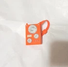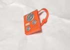 The Monster High 2010 1st Wave Holt Hyde Orange Turntable Boombox Backpack is a unique accessory for Monster High dolls. This plastic backpack features a turntable boombox design in orange color, inspired by the character Holt Hyde. It is lightweight, water-resistant, and doesn't require batteries. The backpack is suitable for ages 5 and up. The item dimensions are approximately 1' in length, 1 1/2' in height, and 1' in width, making it a fun and stylish addition to any Monster High collection. This is missing the top checkered piece and it has 2 little marks on the belt but you can barely see them. It's made of plastic and it measures 1' in width and 1 1/2' in height.