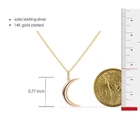 🌙Design🌙Quality dainty necklace detailed with crescent moon pendant, not too thin and small, the perfect new moon shape confirmed after several times of changing drawing and mold, a sense of joy that is as hard to hide. 🌙Material🌙This moon necklace made of solid sterling silver, 14k gold plated, high shine polish, lobster claw clasp. 🌙Size🌙 The dainty necklace length adjustable from 15.7 to 18.5 inches with extender, moon pendant 0.77 inches. You can wear it alone as a simple dainty necklace or layered necklace and match it with other choker necklaces 🌙GIFT PAKAGING🌙 Packaged in elegant presentation box, perfect for giving or keeping - Great for birthday gift, anniversary gift for her, holidays, graduation, mother's day, Christmas day, Valentine's Day or other occasions 🌙MAINTAIN🌙 To keep the high quality jewelry's shine longer, avoid water pools & spas, avoid cosmetics and other chemicals, take off when sleeping, exercising, or doing other physically strenuous activities, sealed with separate storage in dry place and wear it with love & intention