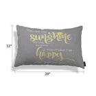 Motivational Phrase Pillow Cover You Are My Sunshine Yellow On Gray With Words Cotton Linen Throw Lumber Pillow Case Cushion Cover Home Office Decorative 12x20 Inches Please allow 1-2cm deviation because of hand-cutting and sewing. This fashionable throw pillow case is easy to put your pillow insert on/ off. It can be used for Christmas party, carnivals, home decor, garden decorations. Product Details: Material: Cotton Linen Size: 12 x 20 Inch (30 x 50 cm) Throw Pillow Case Shape: Rectangle/Oblong Application: Bedroom, Dining Room, Living Room, School, Office, Car, Patio, etc. (Four Seasons Universal) Warm Tips: It is ONLY the pillow cover, WITHOUT insert. 1.Size: 12”x20” (30 cmx50 cm), Please Allowed ±1-2cm Deviations, Due To Different Measurement Methods, The Size Data with an Error of 1-2cm Is Normal. 2.Material: This Soft Throw Pillow Covers Made of Comfortable Cotton Linen. (One Pillow Cover Only, Insert Is Not Include.) 3.Feature: Our Farmhouse Pillow Cases Are Cozy. Easy To Put on - Hidden Zipper Closure for an Elegant Look, Easy To Cram Your Pillow Or Filler into This Cover. Both Sides Are Printed and the Invisible Zippers in the Bottom Are Classy. 4.Suitable Occasions: Pillow Cases Are Suitable for Sofa, Car, Chair, Bench, Bedroom, Bed, Room, Office, Dining Room, Living Room, Porch, Hall, Outdoor, Indoor and Home Decoration. 5.Washing Mode: Safe To Machine Wash Or Wash By Hand, No Bleach,Tumble Dry Low.