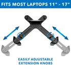 Universal Laptop VESA Mount Tray: This laptop VESA mount tray easily attaches to monitor arms with 75x75mm or 100x100mm VESA patterns. Designed to fit laptops from 11" to 17", it's perfect for dual-screen setups. Adjustable and Secure Fit: The extendable arms on this VESA mount laptop tray hold laptops securely, while stopper ledges and a safety strap prevent slipping. Perfect as a laptop mount for monitor arms or desk mounts. Ventilated X-Frame Design: The open X-frame of this laptop tray for monitor arms improves airflow, keeping your laptop cool and preventing overheating during long work or gaming sessions. Sturdy and Durable: Built with a robust steel-and-plastic blend, this VESA laptop mount offers long-lasting durability without the bulk of full-metal trays. The lightweight design is ideal for easy repositioning. Ergonomic Workspace Solution: Pair this monitor arm laptop tray with a height-adjustable arm to reduce neck and back strain. Create a comfortable, ergonomic dual-screen setup for maximum productivity. Easy Assembly and Compatibility: This laptop mount tray is quick to set up and compatible with most VESA monitor arms. The flexible design accommodates laptops of various sizes and weights with ease. Lifetime Warranty and US-Based Support: Backed by a lifetime warranty and friendly US-based customer service, this laptop tray mount ensures your satisfaction and peace of mind.