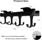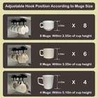 Coffee Mug Hooks Dimensions: 10.24 inches L x 3.15 inches W x 3.35 inches H. This mug hooks under cabinet is suitable for cabinets with a depth of 11.8 inches and above. Tips: You may first measure whether the size of your cabinet is suitable Pull Out Mug Holder: Pull out design enables easy access to mugs and coffee cups, making storing items in cabinets simple. This hanging coffee mug organizer has damping rails which allow it to slide smoothly without unpleasant noise Adjustable Hook Design: The mug hooks of this mug shelf can be slid to adjust the spacing between the hooks according to your needs. The under cabinet mug holder comes with eight hooks, you can hang four to eight mugs according to the size of your mug Good Load Bearing without Tilting: Our mug hanger for kitchen cabinets is made of iron, strong bearing capacity, not easy to bend, and advanced paint spraying to prevent rust Save Space and Keep it Tidy: This mug hooks located inside or under the cabinet can easily hang your mugs, coffee cups, cookware, etc. This mug holder is also suitable for storing hats, ties, belts, and handbags in the closet Product Description