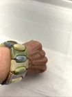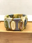This multicolor Lucite stretch bracelet features a retro 80's design with a mix of browns, beige, and gray hues. The bracelet is unbranded and exudes a unique and vibrant aesthetic perfect for adding a pop of color to any outfit. Its stretch design ensures a comfortable and easy fit on the wrist, making it a versatile accessory for various occasions. Each piece of Bracelet is appx 2"