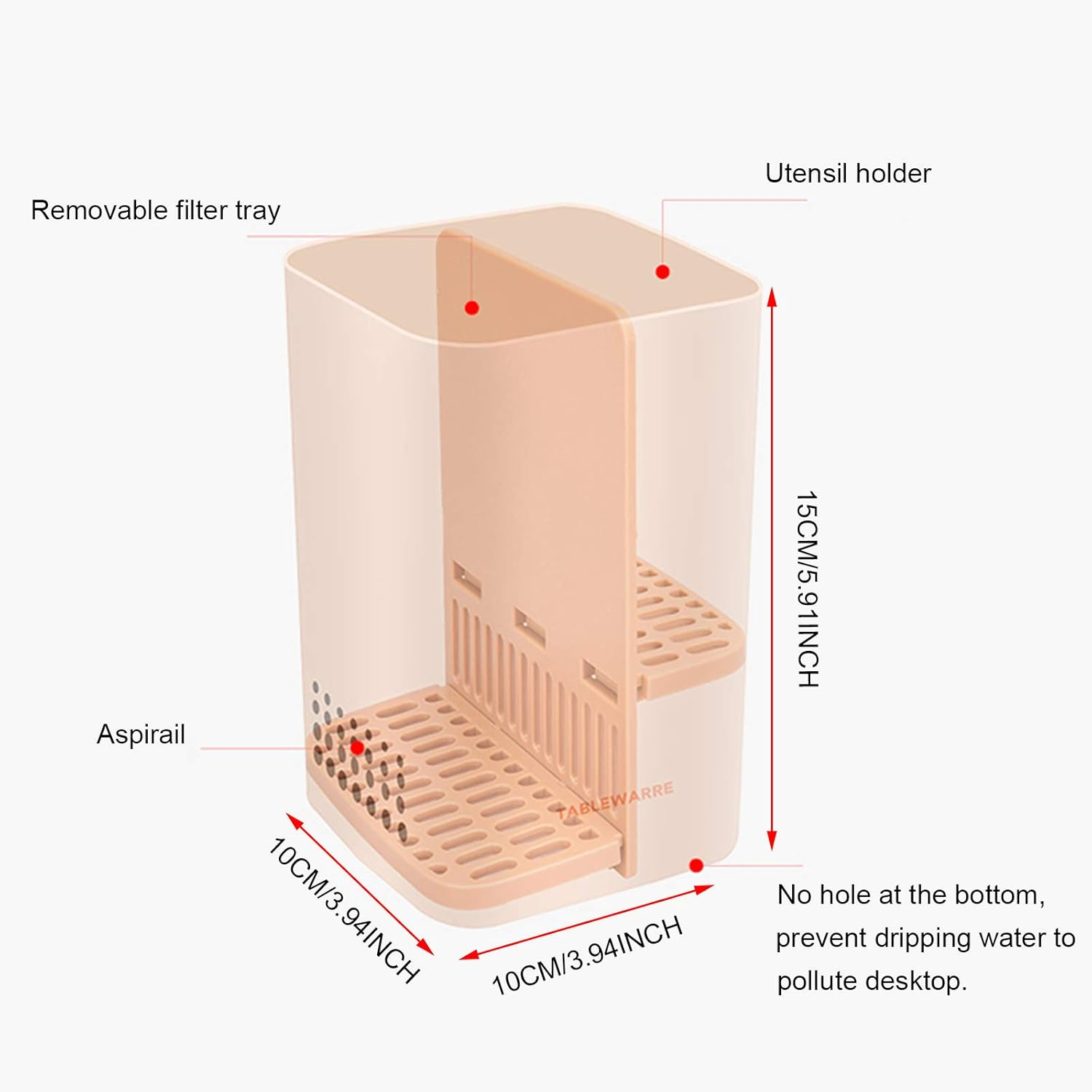 The chopstick holder is made of high quality ABS material, which is durable for using. The Cooking utensil holder size is 15x10x10cm, can carry 2kg, it's fully suitable for kitchen dishwasher or bathroom. Drain holes on both sides of the box + the partition holes make the tableware drain and ventilate quickly, keeping it clean,preventing tableware or kitchen tool from water remaining. Hanging and standing design, save space. Layered System: High floor- place spoon, knife and fork Lower level- spatula, chopsticks, eggbeater and more You can also remove the partition plate and store the cutlery together. Product Description Layered System: High floor- place spoon, knife and fork Lower level- spatula, chopsticks, eggbeater and more You can also remove the partition plate and store the cutlery together. Drain holes on both sides of the box + the partition holes make the tableware drain and ventilate quickly, keeping it clean,preventing tableware or kitchen tool from water remaining. Made of 100% brand new and high quality ABS, reusable, tough, durable and lightweight. Utensil holder designed for easy taking and storing items, more neat and orderly.
