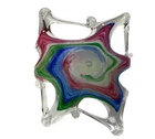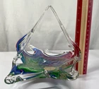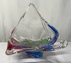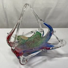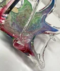 Murano style crystal candy dish decorative basket. Pink, green & blue with clear handles. No chips or cracks. From pet free, smoke free environment.