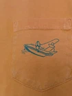 Get ready for a tropical escape with this colorful Marina-Jimmy Buffet Margaritaville T-Shirt. Made with comfortable cotton jersey fabric, this short sleeve shirt features a crew neck and a regular fit for a casual look. The orange shirt is adorned with a graphic print on the back, showcasing the iconic Margaritaville logo and the American flag. Perfect for a day at the beach or a casual outing, this T-shirt is machine washable and easy to maintain. The shirt is ideal for those who love art, music, and nautical themes, as well as those who enjoy colorful and unique clothing. With a pocket for added convenience, this T-shirt is a great addition to any wardrobe. See photos for preowned condition snd sizing.