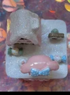 My Melody Pink Kawaii Gingerbread House Jewelry Trinket Ring 💍 Box Figurine NEW. Imported Brand New No tags Will be packaged carefully ♥️ Pet friendly Smoke Free Ty for looking My Melody frosty glittering snow Gingerbread house sits above a dreamy pastel pink & miniature hearts as well as tiny gumdrops jewelry box featuring a golden bow & trim surrounded by cupcakes ,candy, a lollipop, tea pots, cookies & other fun goodness! ♦️ Beautiful collectible to display on your desk top or vanity! ♦️Brand New♦️in Box♦️ ♦️ Imported- The original shipping box is kinda “Meh” but it comes with styrofoam protection & will be bubble wrapped & shipped within another box!♦️ #sanrio #mymelody #porcelain #ceramic #pottery #trinket #vanity #jewelry #ringholder #vanity #desk #collectible #figurine #mirror #pink #littletwinstars #Cinnamoroll #kuromi #hellokitty #pompompurin #japan #fairykei #bunny #treasure #gift