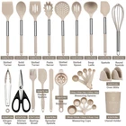 28 DURABLE SILICONE KITCHEN UTENSILS SET: 28 different pieces of kitchen utensils to make your cooking more fun and easy for all your cooking needs, you don't need to spend a fortune to buy each one individually. For example, deep soup, serving spoon, pasta server, flexible pouring brush, mixer, tongs, tumbler, silicone spatula oven mitt, egg separator STAINLESS STEEL AND FOOD GRADE SILICONE UTENSILS SET: The silicone head combined with the high quality stainless steel handle ensures lightweight and durable for everyday use. Designed not to bend, break or rust. Food-grade silicone head with no harsh chemical odor. Stainless steel handle to protect your hands from burns HEAT-RESISTANT, NON-MELTING, ODOR-FREE: healthy silicone tips with no harsh chemical odor. Each cooking utensil can withstand temperatures of up to 446°F. They also won't melt when stirring food directly in the pan. The all-around silicone adds softness, no more worrying about food sticking to your cookware. Extend the life of all your kitchen pots and pans EASY TO CLEAN, DISHWASHER SAFE: This quality kitchen silicone utensil set is easy to clean. To clean these silicone cookware simply rinse gently with warm water or throw in the dishwasher GREAT GIFT: This kitchen utensil kit includes a variety of kitchen utensils, from preparing food, to mixing cooking, each of them has its unique use, this is the best cooking utensil. Perfect for house warming gifts, wedding gifts, mother's day gifts, holiday gifts and anyone else on your gift list. If you have any questions about your purchase or use, we will be happy to help you. Please contact us and we will respond quickly within 12 hours