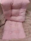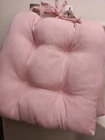 Set of 2 high quality Stratford Home Dining Chair Cushions Never Used. Taken out of original factory packaging only for the purpose of taking pictures. SET OF TWO SEAT CUSHIONS Size: 17"L x 17"W 3.5" - 5" THICKNESS (at thickest part of filling material) Color: Powder PINK (pale pink) Material: 100% Polyester Cushions have fabric ties that keeps the them in place. Enjoy FREE SHIPPING :-)
