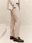 Banana Republic Tailored-Fit Linen-Blend Trouser in Ecru (FIRST PHOTO)...new with tag NOTE: size tag of 36/32 incorrect - inseam measures 30" LINEN-BLEND: This light and breathable fabric is a must for those warm days and styles effortlessly for all occasions. Our customer-favorite linen-blend trouser is back, now accompanied by a matching jacket to complete the full suit look. Hook-and-bar closure with zip fly. Belt loops. Front off-seam pockets. Double welt buttoned back pockets. Soft trouser crease. Matching suit jacket available. Made exclusively for Banana Republic Factory. #878307 Tailored through the thigh. Tapered leg opening. Inseam: Extra Short 26"; Short 28"; Regular 30"; Long 32"; Extra Long 34" 55% flax (linen), 43% cotton, 2% elastane spandex. Dry clean. Imported. ***Inner tag marked***