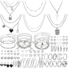 NEWITIN 100 Pieces Silver Jewelry Set for Women Fashion Costume Jewelry Silver Plated Necklace Bracelet Ring Silver Earrings Set for Women Product Details Color: Silver Jewelry Set Brand: NEWITIN MPN: NE3453 UPC: Does not apply EAN: Does not apply Date First Available : October 17, 2024 Brand, Seller, or Collection Name: NEWITIN Material: Metal Gem Type: No Gemstone Model number: NE3453 Metal: Alloy Metal stamp: No Metal Stamp Stone shape: variety Thinking about a special gift for Him/Her? Our women jewelry set would be a good choice. The jewelry set makes a perfect gift for any occasion, best fits for Birthday, Wedding Anniversary, Valentine's Day, Mother's Day, Christmas and any other Big day. In addition, your love can wear the jewelry with your blessing every day. The Bling Bling jewelry set keeps shining beautifully and magnificently. Good value for money and make a great gift too! About Our Store We focus on all kinds of fashion earrings, bracelets, necklaces, Piercing. Most of our products are with stainless steel material, we will test for some days before we release the new products, we care about the quality when you received it and the comfort when you are wearing, we want to do our best to bring you a nice buying experience in our store. Note: Don‘t touch water or sweat,use a soft cloth to gently scrub.If the gloss is dark,you can wipe it with toothpaste and it will be bright