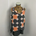 NEXT WOMENS VEST TANK Grey Orange Geometric Uk 14 Perfect for a casual day in style GOOD used condition light signs of use no rips stains or faults See images for sizing of width of top from seam to seam at armpit level when laid flat and also length from top at nape of neck under collar to lower hem Shipped promptly within one working day of sale NOTE there is PREMIUM delivery available at an additional cost please select the upgraded postage on check out