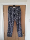 NEXT navy blue and grey patterned linen blend trousers size 10 with tapered legs. Waist 32" inside leg 31" . Two side pockets , zip front and patch back pockets. In good condition. Pet/smoke free home. Look at my other items, please message for discount and combined postage if purchasing more than one.