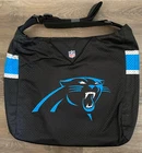 NFL~NEW~Carorlina Panthers Jersey Tote Bag~Black & Blue~NWT *Color: Black with blue & silver panther and stripes *Shoulder strap is adjustable *Bag zips across the top *One small pocket inside *Approximately 13 inches from top of tote to the bottom and 17 inches from side to side *NEW with retail tags attached *We have a smoke free home