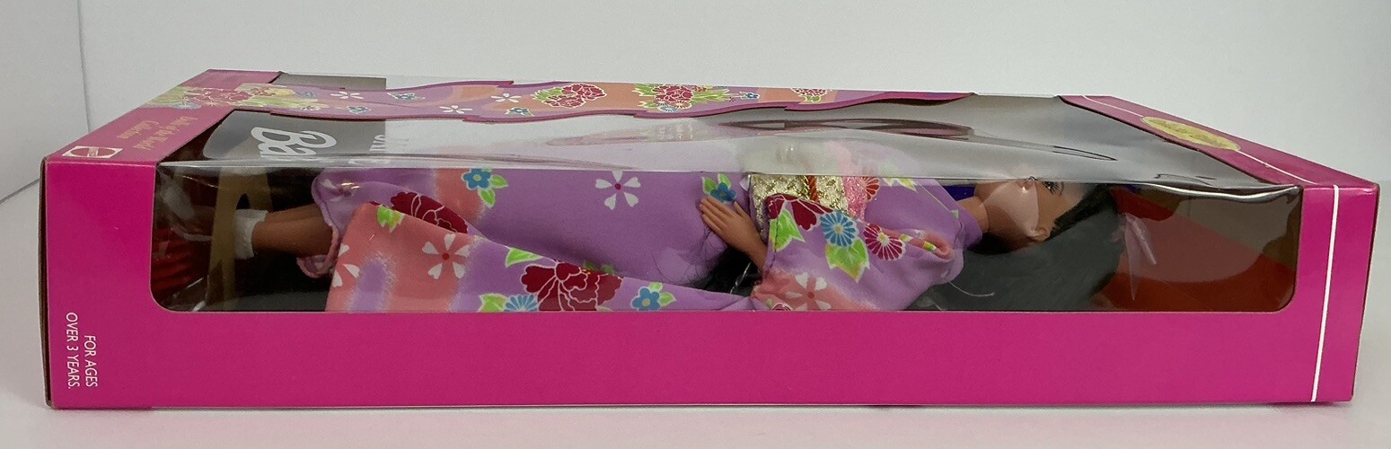 This 1995 Dolls of the World Japanese Barbie #14163 is a vintage collectible that is sure to delight any Barbie enthusiast. This fashion doll features a beautiful Japanese ethnicity and comes from the Dolls of the World Collection. It was manufactured by Mattel in 1995 and is an original, licensed reproduction. The doll is new in box and has never been played with. It includes the doll itself, and is perfect for collectors who appreciate the artistry and craftsmanship of vintage Barbie dolls. This product line is popular among collectors and is a great addition to any collection.