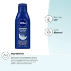 Product Description NIVEA Essentially Enriched, Deep Nourishing, Almond Oil Body Lotion, Travel Size 2.5 Fl Ounce (Pack Of 2) NIVEA Essentially Enriched Body Lotion, nourished and deeply moisturized skin is not as far away as you think. This body lotion for dry skin and very dry skin is infused with NIVEA Deep Nourishing Serum and Almond Oil to nourish by locking in deep moisture. NIVEA Essentially Enriched Body Lotion reduces the roughness of skin, after just 1 application. With a formula that provides 48 hours of deep nourishing moisture, this dry skin lotion locks in moisture and gives noticeably smoother skin. NIVEA is proud to be one of the leading companies in the field of skin care products, with more than 130 years of experience. 48 Hour Deep Nourishing: This NIVEA body lotion for dry skin and very dry skin provides 48 hours of deep nourishing moisture Smoother Skin: Infused with Deep Nourishing Serum and Almond Oil for skin, it reduces roughness after just one application Tested & Trusted: NIVEA Essentially Enriched lotion is dermatologically tested, and is ideal for those looking for a daily lotion for very dry skin Convenient Pump Bottle: NIVEA dry skin lotion pump bottle is a convenient option for home or office use Infused with Deep Nourishing Serum and Almond Oil for skin nourishing and reduced roughness after just one application NIVEA Essentially Enriched lotion is dermatologically tested, and is ideal for those looking for a daily lotion for very dry skin NIVEA dry skin lotion mini bottles are a convenient option for on-the-go and travel essentials NIVEA is a trusted leader in skin care products, with more than 130 years of experience Infused with Deep Moisture Serum and Almond Oil Intensively moisturizes for 48 hours Noticeably reduced skin roughness after just 1 application Designed for dry to very dry skin Special Ingredients: Almond Oil Product Benefits: Nourishing Skin Type: Dry Item Form: Lotion Special Ingredients: Almond Oil Ingredients Water, Mineral Oil, Isohexadecane, Glycerin, Petrolatum, PEG-40 Sorbitan Perisostearate, Prunus Amygdalus Dulcis (Sweet Almond) Oil , Magnesium Sulfate, Fragrance, Citric Acid, Sodium Citrate, Potassium Sorbate