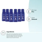 Product Description NIVEA Essentially Enriched, Deep Nourishing, Almond Oil Body Lotion, Travel Size 2.5 Fl Ounce (Pack Of 1) NIVEA Essentially Enriched Body Lotion, nourished and deeply moisturized skin is not as far away as you think. This body lotion for dry skin and very dry skin is infused with NIVEA Deep Nourishing Serum and Almond Oil to nourish by locking in deep moisture. NIVEA Essentially Enriched Body Lotion reduces the roughness of skin, after just 1 application. With a formula that provides 48 hours of deep nourishing moisture, this dry skin lotion locks in moisture and gives noticeably smoother skin. NIVEA is proud to be one of the leading companies in the field of skin care products, with more than 130 years of experience. 48 Hour Deep Nourishing: This NIVEA body lotion for dry skin and very dry skin provides 48 hours of deep nourishing moisture Smoother Skin: Infused with Deep Nourishing Serum and Almond Oil for skin, it reduces roughness after just one application Tested & Trusted: NIVEA Essentially Enriched lotion is dermatologically tested, and is ideal for those looking for a daily lotion for very dry skin Convenient Pump Bottle: NIVEA dry skin lotion pump bottle is a convenient option for home or office use Infused with Deep Nourishing Serum and Almond Oil for skin nourishing and reduced roughness after just one application NIVEA Essentially Enriched lotion is dermatologically tested, and is ideal for those looking for a daily lotion for very dry skin NIVEA dry skin lotion mini bottles are a convenient option for on-the-go and travel essentials NIVEA is a trusted leader in skin care products, with more than 130 years of experience Infused with Deep Moisture Serum and Almond Oil Intensively moisturizes for 48 hours Noticeably reduced skin roughness after just 1 application Designed for dry to very dry skin Special Ingredients: Almond Oil Product Benefits: Nourishing Skin Type: Dry Item Form: Lotion Special Ingredients: Almond Oil Ingredients Water, Mineral Oil, Isohexadecane, Glycerin, Petrolatum, PEG-40 Sorbitan Perisostearate, Prunus Amygdalus Dulcis (Sweet Almond) Oil , Magnesium Sulfate, Fragrance, Citric Acid, Sodium Citrate, Potassium Sorbate