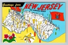 NJ-New Jersey, Scenic View Map, State Flag Landmarks Vintage Postcard
