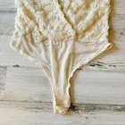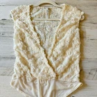 NWOT Free People 2 Haute 2 Handle Bodysuit Lace Mesh Soft V-neck Stretch Ivory Show off in this bold bodysuit featured in a textured fabrication and pull-on style with cap sleeves and a plunging neckline. Never Worn Out Tag Condition; no defects