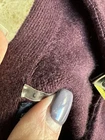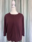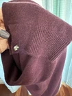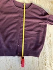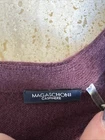 This NWOTs Magaschoni cardigan is a luxurious addition to any wardrobe, featuring a solid burgundy color and a tight-knit cashmere fabric for warmth and comfort. The classic fit and long sleeves make it suitable for both travel and casual occasions, with a crew neck and bling top button adding a touch of designer style. The bling accents on the top button and sleeves elevate the look of this button-front cardigan, which is a size L and requires dry clean care. Made in China, this Magaschoni sweater is a timeless piece for women seeking a chic and cozy layering option.