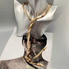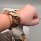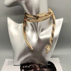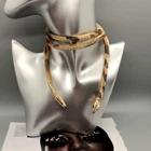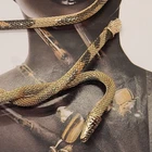 This stunning snake necklace is the perfect addition to any jewelry collection. Featuring an adjustable snake design with gold embellishments, this choker-style necklace is perfect for any occasion, especially birthdays. The necklace is made of yellow gold-plated metal and features an open closure for easy wear. The necklace also boasts a unique serpent theme, making it a must-have for any fashion-forward individual. The necklace is adjustable and gives several different looks. Can be worn various ways, necklace, choker, or bracelet. Bend it, twist it any way you want. This necklace is brand new with tags and is a great addition to any outfit.