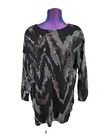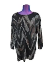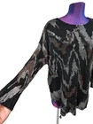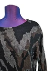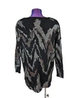 NWT Bohoartist Black & Silver Metallic Oversized Scoop Neck Sweater Medium N60 New with tags NWT Bohoartist Black & Silver Metallic Oversized Scoop Neck Sweater Size Medium Women's Features loose knit black with metallic silver and bronze abstract print, scoop neck, oversized sweater, rounded bottom hem, long dolman sleeve, falls at thighs, classic sweater. Measurements laying flat chest 23" length 26.5" arm inseam 12.5" Fabric cotton and polyester This garment is new with tags, no defects.