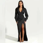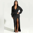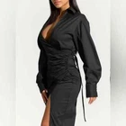 Naked Wardrobe Black V-Neck Ruched Wrap Shirting Shirt Dress Maxi Size: LARGE = 8/10 Color: Black Bust 40" (20" laying flat) Waist 34" Hip 44" Length 63" YOUR NEW MAXI DRESS HAS ARRIVED! THIS FAUX WRAP DRESS FEATURES PLUNGING V-NECKLINE LONG SLEEVES WITH BUTTON CUFF SEXY HIGH SLIT SIDE-ADJUSTABLE TIE DETAIL CINCHES IN YOUR WAIST SIDE ZIP CLOSURE SHIRTING COLLECTION 77% POLYESTER, 20% MODAL, 3% SPANDEX NEW without tag