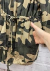 ****(Missing detachable hood)**** This Naked Wardrobe military camo jacket for women is a must-have for fans of streetwear, Y2K style, and outdoor adventures. The mid-length jacket features a green camouflage pattern with a cinch waist tie accent. It has a zip and snap closure, long sleeves, and is made of cotton canvas with a polyester lining. The oversized jacket is perfect for layering and is fully lined for added comfort. It's suitable for travel, everyday wear, and outdoor activities. The jacket is hand wash only and is available in a size small. Get ready to rock the classic military look with this Naked Wardrobe jacket. Naked Wardrobe Military Camo Jacket Womens Size Small Oversized Fully Lined Y2K Streetwear Style Drawstring adjustable cinched waist Drawstring Hem Full Front Zip Closure with snaps Flat Lay Measurements are approximately Pit to Pit 21” Length 30” Sleeve 22” Pre-owned Good Condition Normal Distress from wear ****(Missing detachable hood)**** See Pictures for details A-839