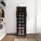 9-Tier Narrow Fabric Shoe Rack with Dust Cover for Front Door Entrance, Closet, Dorm 1. Space-Saving Shoe Shelf: 17.7"W x 11.8"D x 62.2"H, can hold up to 20 pairs of shoes. The narrow profile allows for easy placement even in confined areas, making it ideal for hallway, closet, or behind door. 2. Sturdy and Durable: The black shoe rack is assembled from sturdy metal tubes, waterproof non-woven shelves and reinforced plastic connectors. 3. Removable Shelf: You can remove shelves to create more storage space for tall boots, shoe boxes, toys and other large items depending on your storage needs. 4. Easy Assembly: Simply fix the metal tube into the plastic connector. 5. 4 Practical Side Pockets: Convenient for storing keys, shoe brushes, hats, umbrellas, gloves, belt and other small items. 6. Dustproof Design: The dust cover shields your shoes from dust and keeps them tidy. Large Capacity 10 Tier Shoe Rack: The vertical shoe storage measures 17.7"W x 11.8"D x 62.2"H, and can easily store 18-22 pairs of shoes. free standing shoe organizer cabinet keeps your shoes organized and easily accessible. Durable and Dustproof: The narrow shoe shelf is composed of sturdy metal tubes, high-quality plastic connectors and non-woven fabric shelves (up to 10 lbs per layer). The cloth cover with zip prevents dust and dirt from entering shoes. Space Saving Fabric Shoe Stand: This black shoes rack makes efficient use of vertical space, making it easy to organize your shoe collection while taking up less space. Ideal for closet, front door entrance, garage, bedroom, living room and other tight spaces. Stackable and Removable: The tall shoe rack organizer can be split into multiple low shoe shelves. You can also remove one shelf to store shoe boxes, high boots, toys or other large items. In addition, the 4 side pockets of the dust cloth cover can be used to store small items such as keys, umbrellas, gloves, belt or wallet. Easy to Assemble: Simply use the included small wooden hammer to connect the metal tube to the plastic connector, then install the non-woven shelf and dust cover. The illustrated installation manual and detailed assembly video will help you complete the assembly process faster.