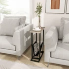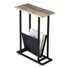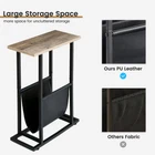 Narrow Side Table with PU Leather Magazine Holder Rustic Slim Little Thin Tab...
