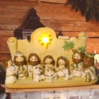Nativity Set Version - 10 Piece Religious Manger Scene Resin Cute Version7333 : This little navity set is absolutely adorable. The cute disign attract children. Many children full in love with it. Craftsmanship: pure handmade works, using high-grade resin in the industry as raw materials, paying attention to details, handmade mini style, very suitable for children to learn the story of Jesus. Applicable places: It can be placed in gardens, lawns, churches, and can be well integrated with the environment. It is a decoration. It can be used as a home altar, art collection or gift, it is a good choice. In terms of design: the design of this product has a childlike atmosphere. The Q-version design allows children to better learn the knowledge of Jesus. Press the angel to listen to music. The size design is for children. Meaning: Ornaments are used to decorate homes and gifts during Christmas to celebrate the birth of . It is presented in a lovely and sophisticated way, allowing people to on the Christian faith during celebrations. Material: Resin colour: As Shown Package Contents: 10 x Decorations 1 x base