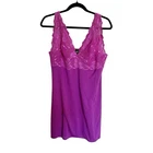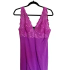 Elevate your nighttime attire with the Natori ZEN Soft Modal Lace Magenta Purple Babydoll Chemise Slip Dress Nightie. Designed with a commitment to comfort and style, this dress features a lightweight modal fabric, adorned with delicate lace that adds a touch of romance to your sleepwear collection. Its adjustable straps ensure a perfect fit for a size small, while the V-neckline complements the overall elegance. The solid purple hue exudes a calming, yet feminine vibe, making it an ideal choice for a relaxing night's sleep or a cozy morning brunch. The dress's babydoll style is a timeless piece that pairs effortlessly with your favorite robes or slippers. Whether it's for intimate evenings or lazy weekend mornings, this Natori dress promises both comfort and style.