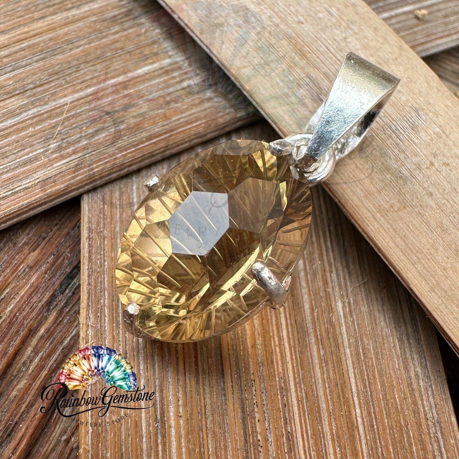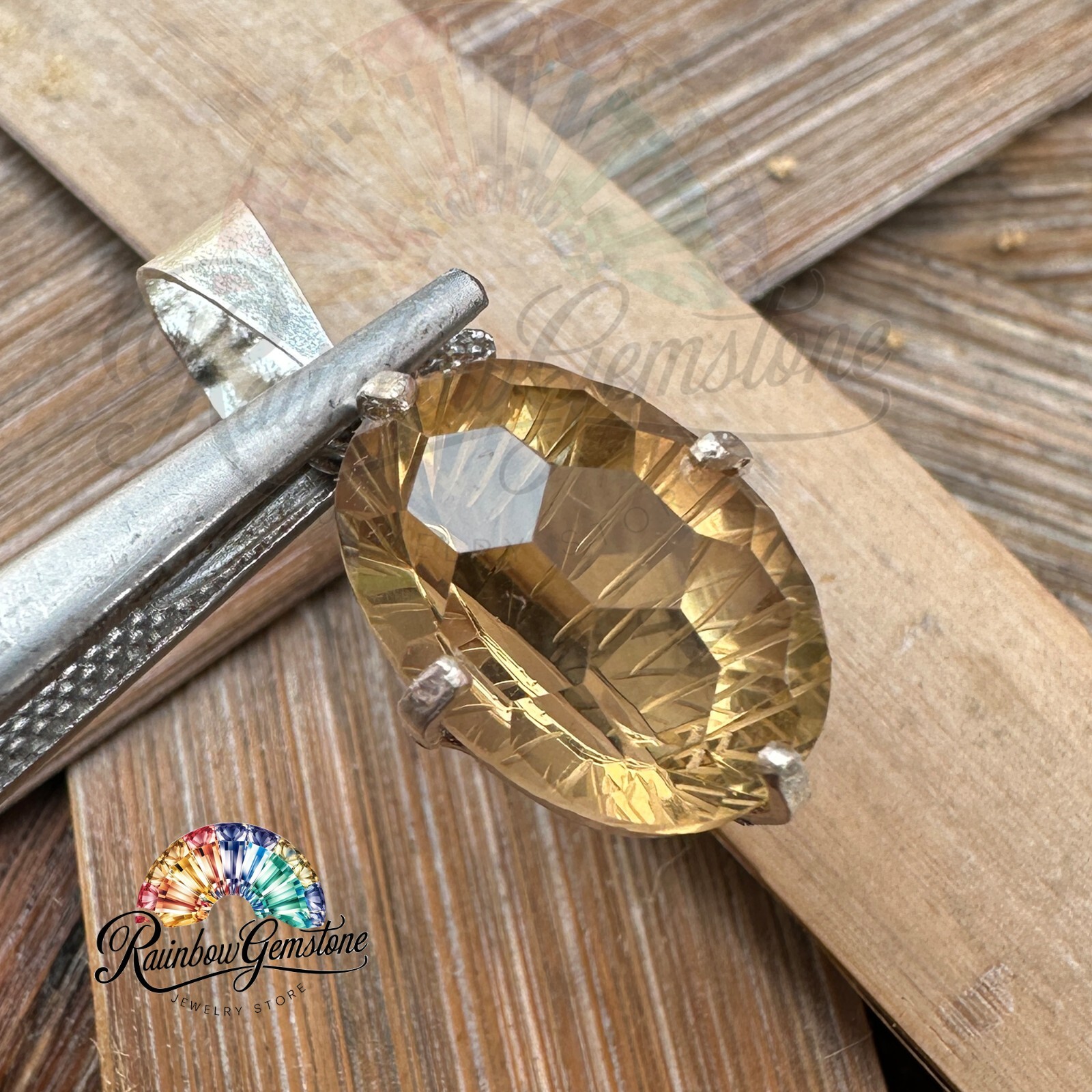 Natural Certified Yellow Citrine 12.15 Ct Loose Gemstone 925 Silver Pendant