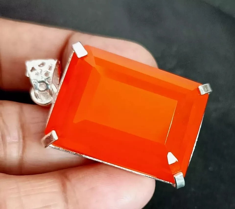 925 Sterling silver opal Pendant Natural Fire Opal Necklace Pendant Gift 227
