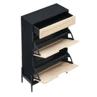 【Natural Rattan Design】:Crafted with natural rattan and black wood panels, this stylish storage unit blends seamlessly with any decor while adding an organic touch to your space. 【Smart 2+1 Storage System】:Features two spacious lower drawers (holds up to 12 pairs of shoes) and one top drawer for small items. Adjustable middle partition accommodates boots, sneakers, or flats. 【Space-Saving Design】:Compact 24"W × 9.4"D × 40.3"H footprint fits effortlessly in entryways, bedrooms, or living areas while maximizing storage capacity. 【Premium Construction】:Metal support legs and solid wood panels ensure stability, with anti-tip protection for added safety. 【Quick Assembly & Care】:Includes simple instructions for easy setup. Maintains effortlessly with damp cloth cleaning. Contact our customer service for any assistance.