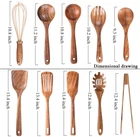 10 Pack set: An ideal Wooden Kitchen Utensil Set that features all the cooking tools including spatula,fried spatula,slotted spatula, soup ladle, spaghetti server,tong,strainer spoon,salad fork,mixing spoon and egg whisk. 100% TEAK: Constructed from teak wood.close-grained hardwood , and silica content that is known for being one of the hardest, strongest of all timbers. Beautifully crafted, soft to touch, lightweight, and very solid basically defines what great workmanship is. 100% EASILY CLEANED AND SAVE: This nonstick kitchen wooden utensil set can be hand washed with warm water, dry thoroughly, DO NOT SOAK the wooden spoons. The wooden spatula sets are stored easily in drawers or hung up and air dry. every spatula comes with a hanging hole for space-saving in the kitchen. the hanging hole is big enough for any thick rope or leather rope. 100% NON-STICK & NON-SCRATCH: The Teak wooden spoons are perfect for use with nonstick cookware, and the wooden spoons for cooking contoured lines provide a comfortable hand feel. Our kitchen wooden utensils set are very smooth with good touch feeling, won't scratch or damage your favorite non-stick cookware! Our wood cooking utensils protect your expensive non-stick pots and pans!