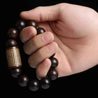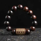 Natural Wood Lightning Jujube Beads with Mantra Buddhist Prayer Charm Bracelet