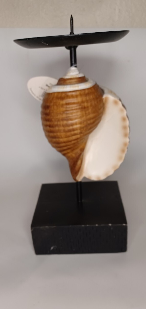 Nautical Resin Seashell Conch Candle Holder Pedestal on base 8.5".This is a open box used with tag item as shown,has some wear on base as shown.Very beautiful piece great gift for any Nautical fan!