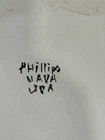 Navajo pottery vase signed Philips. Made in USA. Subtle blue, purple, black and creamy white colors. Southwestern decor. Measures approximately 4” tall and approximately 8” wide. Preowned. Very good condition.
