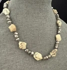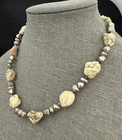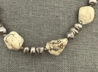 Antique:NoTheme:BeautyPersonalize:NoMain Stone Treatment:UnknownPendant/Locket Type:NoneMain Stone:MagnesiteStyle:BeadedOccasion:Allgtin13:Does not applyHandmade:NoMain Stone Creation:UnknownPendant Shape:NoneUPC:Does not applyMetal Purity:UnknownColor:Off White Green Veins, SilverSeller Warranty:YesType:NecklaceSigned:NoNumber of Gemstones:NumerousLength (inches):19 InMain Stone Width:MultipleMetal:UnknownChain Type:UnknownCountry of Origin:UnknownCountry/Region of Manufacture:UnknownEra:UnknownMain Stone Color:Off White Green VeinsBase Metal:UnknownCustomized:NoMPN:UnknownMain Stone Shape:Chunky RoundishClosure:LobsterNecklace Length:19 inVintage:YesMaterial:Stone, Beads, MetalBrand:UnbrandedWholesale:NoMain Stone Depth:MultipleMain Stone Length:MultipleSetting Style:Natural