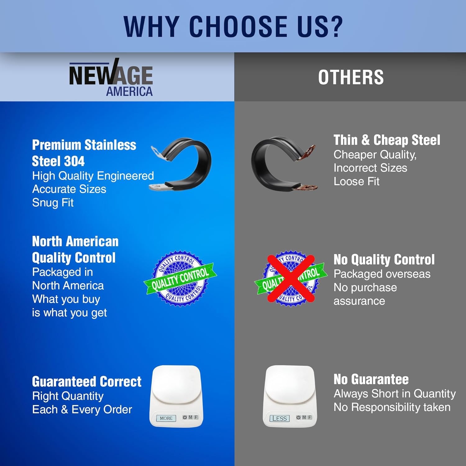 Free eBay listing template designed by dewiso.com New Age America® 109pcs Cable Clamps Set & Bolts/Nuts/Washers/Allen Key | 3/16" to 2" (5-51mm) | 12 Sizes | Black | 304 Stainless Steel & Rubber Cushioned Cable Clamps | Automotive Wire Pipe FREE AND FAST SHIPPING! About this item [High-Quality Construction] New Age America’s Cable Clamps are Manufactured with Excellence, using Premium Materials like 304 Stainless Steel and High-Quality Rubber. This Combination offers Superior Heat, Abrasion, Moisture, and Rust Resistance, ensuring Durability and Long-Lasting Performance. Ideal for a Wide Range of Applications, these Clamps are Perfect for Securing Cables in Automotive, Industrial, or Residential Settings where Environmental Resistance is Crucial [Versatile Cable Clamps] New Age America's Cable Clamps Assortment Kit Encompasses a Comprehensive Range of Sizes for Various Cable Diameters, Including 3/16” (5mm), 1/4” (6mm), 5/16” (8mm), 3/8” (10mm), 1/2” (13mm), 5/8” (16mm), 3/4” (19mm), 1” (25mm), 1-1/4” (32mm), 1-1/2” (38mm), 1-3/4” (45mm), and 2” (51mm). Complete with M5 Screws, Nuts, Washers, and an Allen Key for Installation, Each Clamp in the Kit is Clearly Marked with Its Size to Avoid Mix-Ups and Ensure Precise Usage [Global Approvals] New Age America's Stainless Steel Rubber Coated Cable Clamps meet Multiple Industry Certificates like CE, RoHS, and REACH. Manufactured in an ISO-rated facility, These Cable Clamps are Crafted from Stainless Steel 304 with Thick, Cushioned Rubber Coating, providing Reliable and Durable Cable Management Solutions. Ideal for Various Applications including Securing Garden Hose Pipes and Wire Clamps [Assortment Case] Keep Spare Cable Clamps Organized and Easily Accessible with Our Heavy-Duty Coated Cushioned Insulated Clamp Assortment Kit from New Age America. Perfect for Storing Cable Clamps, Rubber-Coated Clamps, and Wire Clamps, This Kit Ensures Convenience and Organization for Your Various Clamping Needs. Ideal for Securing Garden Hose Pipes and More [Lifetime Warranty] Every Cable Clamp from New Age America comes with our Exceptional Lifetime Warranty. Crafted with Premium Stainless Steel 304 Material and featuring Thick Rubber Coating, these Wire Clamps provide Durable and Cushioned Support for your Cables. Suitable for various Applications including Securing Garden Hose Pipes, these Rubber-Coated Cable Clamps ensure Long-Lasting Durability and Peace of Mind › Product We offer a 30-Day Return Policy on items which you are not completely satisfied with. You have the option for a full-refund or an exchange of the item. No returns are available on items shipped outside of the US . Shipping We offer Free Shipping to the US and ship within 2 business days of payment, usually sooner. We use UPS express shipping. That's why your products are usually delivered within 3 days . Contact We try our very best to make sure every customer is completely satisfied. If there's a problem , message us! We're happy to help. 24/7 live chat available.