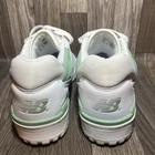 These New Balance 550 sneakers in white and mint green are a perfect addition to your shoe collection. Designed for men, these athletic shoes have a lace-up closure and a low-top shaft style. The cushioned and comfortable features make them suitable for various occasions, including activewear, casual, and workwear. These sneakers have a style code of BB550FS1 and were manufactured in Vietnam in 2022. They are perfect for walking, school, running, and jogging. The upper material is made of leather, and the shoes are available in size 11 with a D width. The nickname of these sneakers is "White Mint Green," and they are part of the New Balance 550 product line.