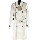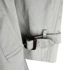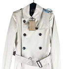 Exposed button fastenings at front collar Buttoned epaulette at shoulders Buckle-fastened tab at cuffs Double-breasted Storm flap Detachable buckle belt at waist Two pockets at front Branded buttons Single vent at back hem Fully nova check lined Brand New With Tags Retails: $2,650 Color: Stone Condition: New With Tags Material:67% Cotton 23% Polyamide Measurements: Pit to Pit: 17.25" Garment length: 37.5" Sleeve length: 23" Shoulder to shoulder: 15"