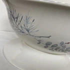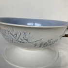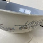 This Pfaltzgraff serving bowl features a Winter Frost pattern with pine needles and cones design. The round bowl is 10.5 inches in diameter and made of stoneware in off white with blue grey and purple colors. It is stackable, microwave and dishwasher safe, and decorated with a floral and nature theme. This retired piece is perfect for Christmas, Winter, New Year's, Thanksgiving, or any occasion. Beautiful addition to your tableware collection I have numerous pieces!