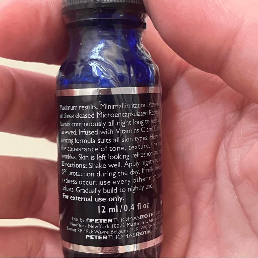 New and Sealed Peter Thomas Roth Retinol Fusion PM Serum Ornament 0.4-oz The fragrance-free formula contains technology that microencapsulates our retinol, allowing it to be time-released and gradually delivered overnight. It helps to improve the appearance of fine lines and wrinkles and skin texture. Formulated with Vitamins C and E, this moisturizing formula is suitable for normal to dry skin. Skin is left looking renewed, vibrant and more youthful.