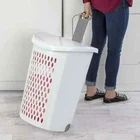 Product details Moving laundry around your home just got easier with the Sterilite Ultra™ Wheeled Hamper. Incorporated into the base of the hamper, the wheels move easily across all smooth surfaces, while the retractable handle provides a secure grip to easily transport clothes. The combination of these two features helps to make trips to the laundry room less of a chore. For situations where the hamper needs to be lifted, integrated handles on each side provide a comfortable gripping surface. The flip-top lid keeps clothes contained and neat, while a large, stylish hole pattern promotes air flow to keep clothes well ventilated. Its durable construction and reinforced rim are designed to hold up to regular day-to-day use. This hamper is ideal for storing dirty clothes and transporting laundry, making it the perfect solution for those living in apartments or dorm rooms. The overall assembled dimensions of this item are 20 1/8" L x 15 3/8" W x 26 3/4" H. Sterilite Adult Plastic Ultra™ Wheeled Hamper White Outside Dimensions: 20 1/8" x 15 3/8" x 26 3/4" Large 2 Bushel capacity Smooth gliding wheels to easily transport laundry Retractable handle provides secure grip and pushes down and out of they way when not in use Flip-top lid keeps your laundry contained and neat, while the large hole pattern promotes air flow BPA-free and phthalate-free