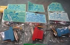 Another interesting find. From the RS-232 Box comes an assortment of plugs and covers for soldering to DB-9 and DB-25M connectors. There's quite an assortment of them and one each of gender changers. In hood only offerings there is one each of blue, red, green, and navy. In solderless kits, they all are RJ-45 to two each of the blue and red in the DB-25 and one of each in the DB-9s along with a gray. Also threw in a R3M solder pin mic plug. BONUS: Found more parts in shed. 6 - New gray DB-9 covers plus open extras. 1 - New 15-pin cover and solder plug. 2 - Ortronics 25-pair to 6C plug. Unknown number of 6.6mm hex nuts in a bag to secure plug to plug without taping. 4 - 25-pair hoods. 2 are metalized, one in red, and one in blue. 12-DB-25 female solder on RS-232 jacks and one more male plug. See added pictures. Ideal for the hobbyist or vintage restorer.
