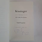 KISSINGER 1923-1968: THE IDEALIST [Signed] Author: Ferguson, Niall Title: KISSINGER 1923-1968: THE IDEALIST [Signed] Publication: New York, New York: Penguin, 2015 Edition: First Edition, First Printing Description: Octavo, 986 pages. In Very Good condition with Near Fine condition dust jacket. Spine is cream and red with a small portrait of Henry Kissinger and black and white lettering. Dust jacket protected by mylar covering, price uncut: "$60.00" on front flap. Signed flat and dated "5.X.15" by Niall Ferguson on title page. Shelved in hallway. Seller ID: 1389760 Subject: Politics, Government, and Law, US History Welcome to the eBay store of Second Story Books! DC's Oldest Rare and Used Bookstore, Second Story Books operates two open shops in the Washington D.C. metropolitan area. We have an extensive internet presence and provide accredited appraisals member ASA. This listing was created by Bibliopolis.