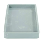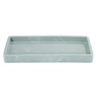 The Nicole Miller Kendall Oasis Vanity Tray features a marble-look design in a beautiful shade of aqua blue with subtle white veins. Made of durable resin for easy care and long life, 10"L x 5"W x 1"H. Coordinating accessories, shower curtain, towels and rug available. INCLUDES: (1) Vanity Tray QUALITY: 100% Resin CARE INSTRUCTIONS: Wipe with a damp cloth ADD STYLE: Features a marble-look design in a beautiful, rich shade of clay with subtle white veins COLLECTION: Mix and match with other items from our collection! Ideal dorm room essentials.